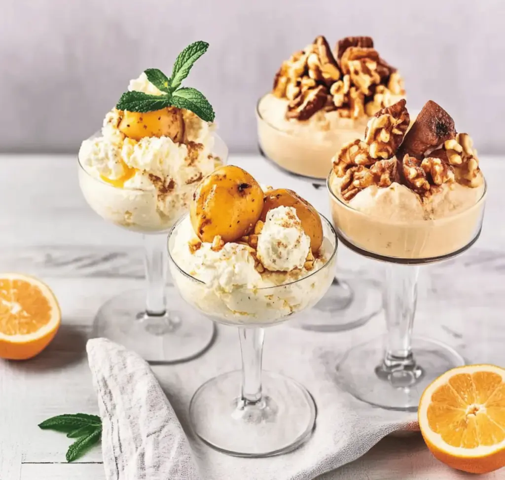 - Vanilleeis (Vanilla Ice Cream) – Cremige Basis, die hervorragend zu den gegrillten Pfirsichen passt; für eine vegane Option kann auch milchfreies Eis verwendet werden.