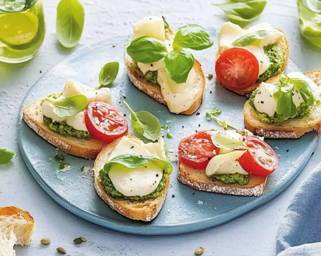 - Perfekte Pesto-Dosis: Verteilen Sie das Pesto gleichmäßig, um sicherzustellen, dass jede Brotscheibe gut aromatisiert ist, ohne zu überladen.