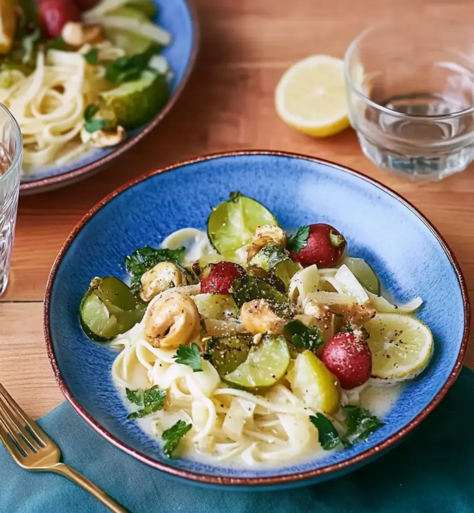 Gesunde Wahl: Diese cremigen Spaghetti sind vegan und glutenfrei, perfekt für gesundheitsbewusste Genießer.